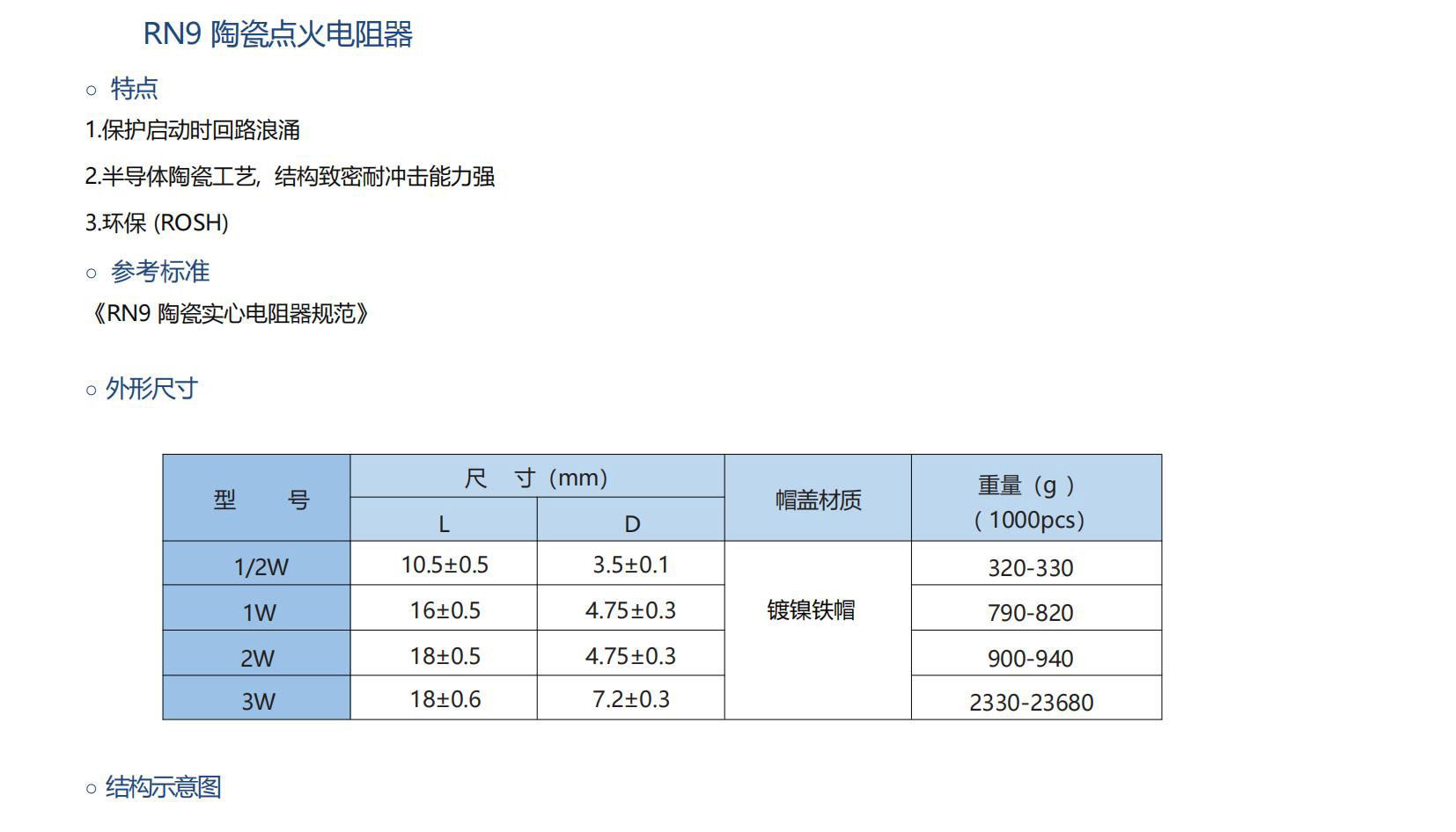 RN9 型陶瓷點火電阻器